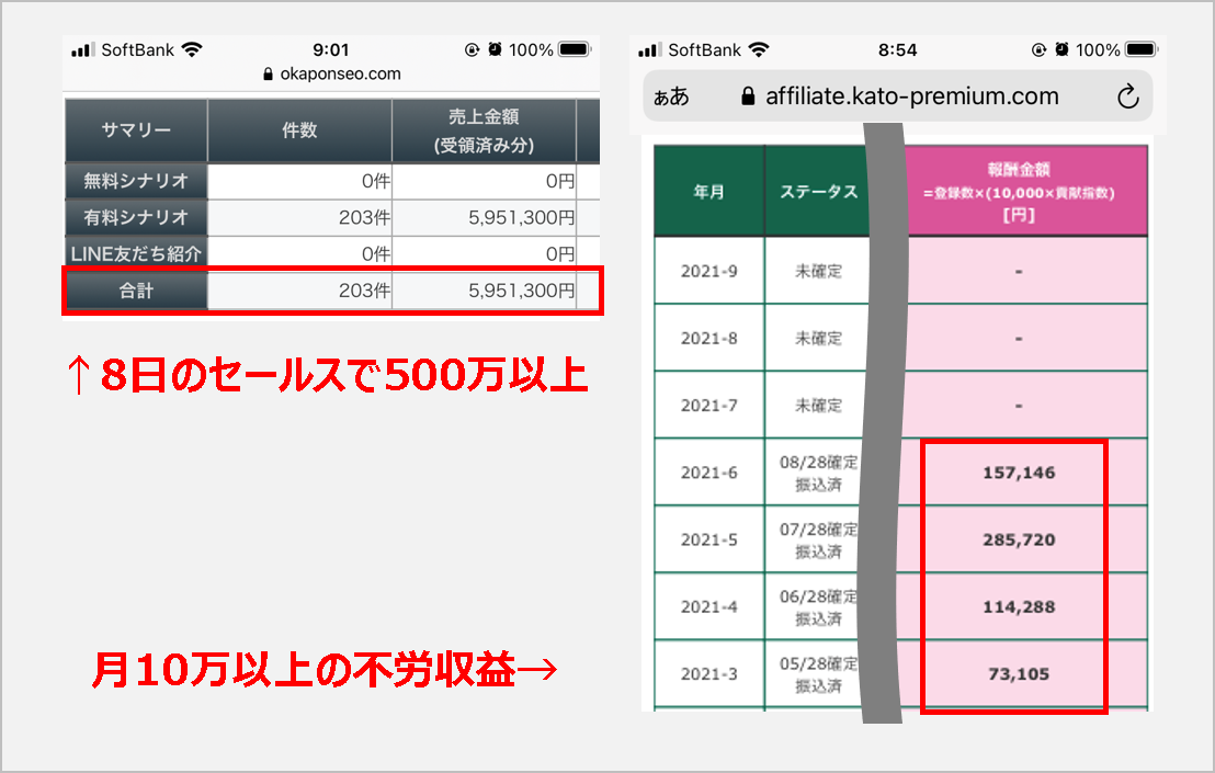 ぶっちゃけてしまうと、僕の商品のアフィリエイト権は有料で置いておくだけで、数日で80万円近くの収益が僕に入ってきます。作業時間にして10分です。
