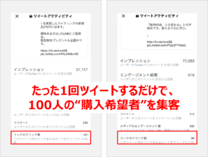 たった1ツイートするだけで、毎回100人もの「購入意思を持ったお客様」を集めており、